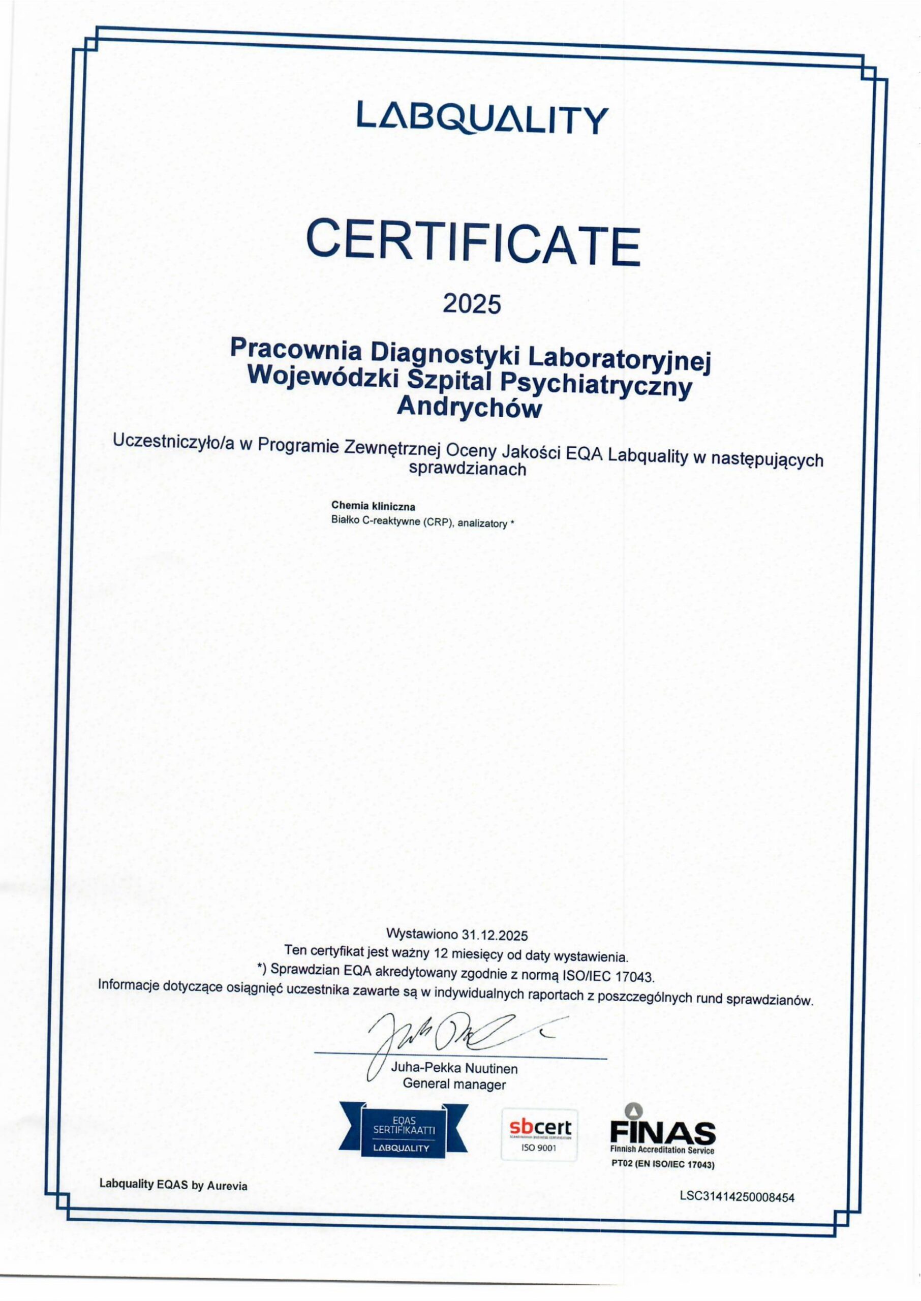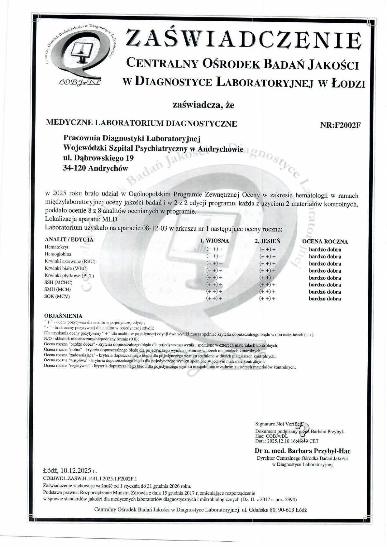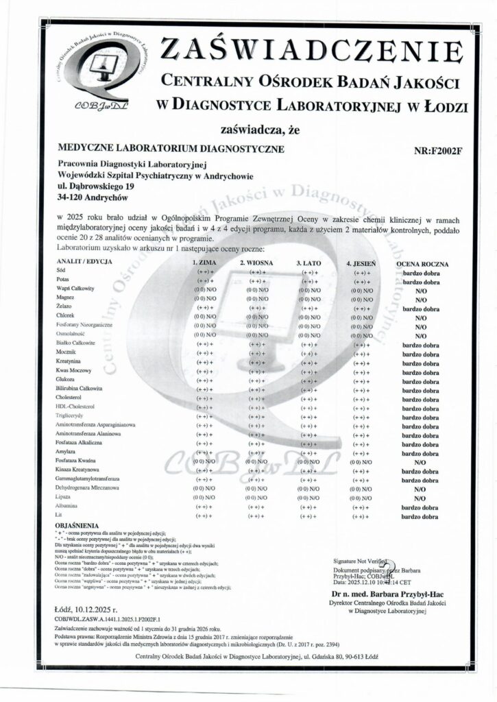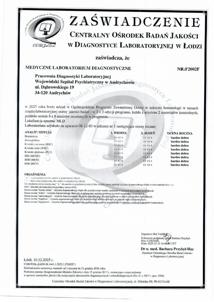 - Celem zapewnienia wysokiej wiarygodności otrzymywanych wyników prowadzimy udokumentowaną kontrolę jakości: